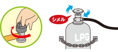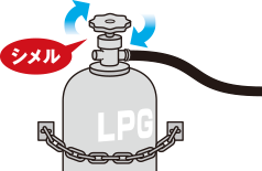 ガスの元栓・ガスボンベのバルブまで全て閉めてください。